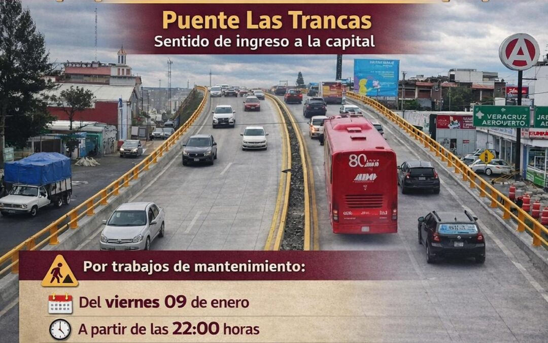 La Secretaría de Infraestructura y Obras Públicas (SIOP) informa que, debido a trabajos de mantenimiento, se realizará el cierre del puente Las Trancas en el sentido de ingreso a la ciudad de Xalapa, a partir de las 22:00 horas de este viernes y hasta la mañana del domingo 11 de enero.