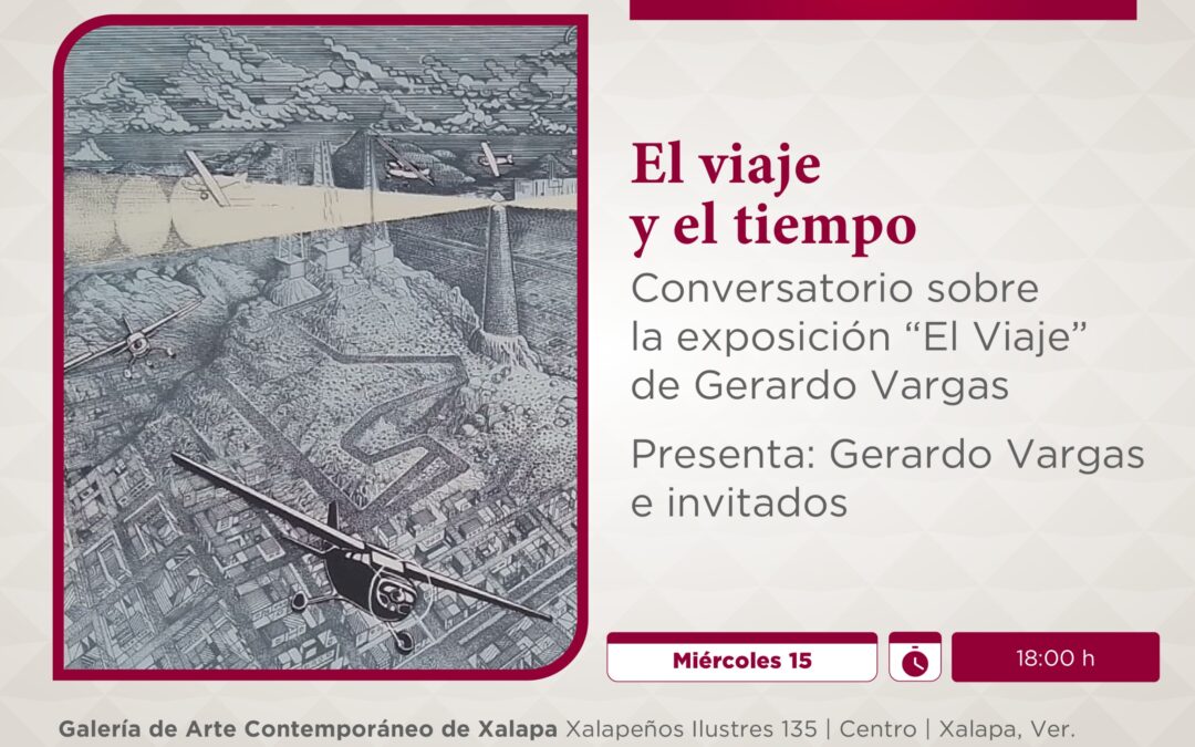La Secretaría de Cultura de Veracruz (SECVER) invita al público en general al conversatorio El viaje y el tiempo, que se realizará el día 15 a las 18:00 horas en la Galería de Arte Contemporáneo de Xalapa (GACX). La entrada es gratuita.
